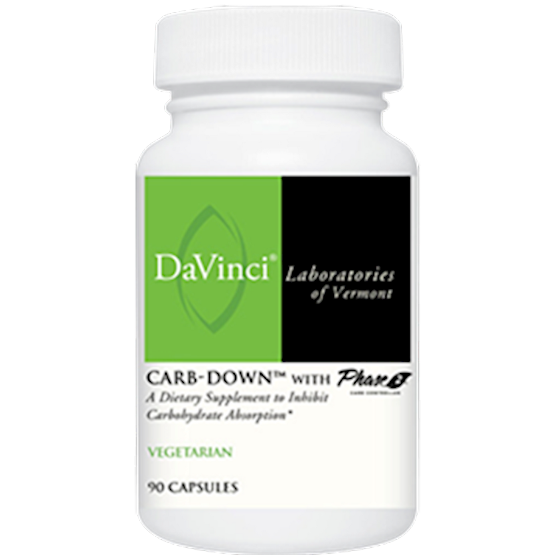 As vegetarian dietary supplement to help inhibit carbohydrate absorption, Carb-Down is a unique combination of the Phase 2 brand starch neutralizer, Gymnema sylvestre, and Chromemate brand chromium polynicotinate. Phase 2 starch neutralizer is an extract from the white kidney bean (Phaseolus vulgaris). Research shows that this extract can help block the absorption of carbohydrates (from starch) because it contains a protein component that inhibits the enzyme alpha-amylase from breaking down carbohydrates from foods.* When this enzyme is blocked, the starch thats eaten cannot be converted to fat.* The addition of Gymnema sylvestre and Chromemate is to support satiety and glucose metabolism.*