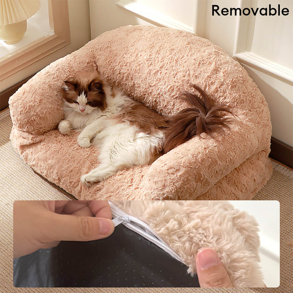 - Ultra-Soft Faux Rabbit Fur: Wrapped in premium faux rabbit fur, this sofa bed offers a luxuriously soft and gentle surface, perfect for your pet to curl up, sleep, or simply relax in comfort.