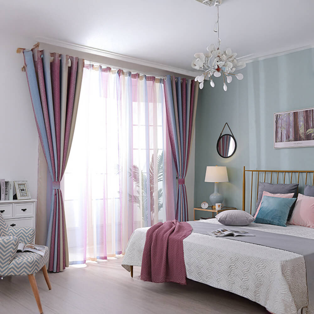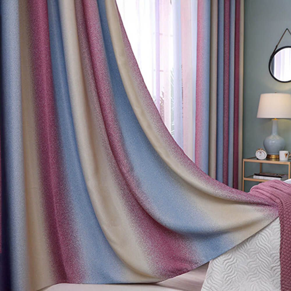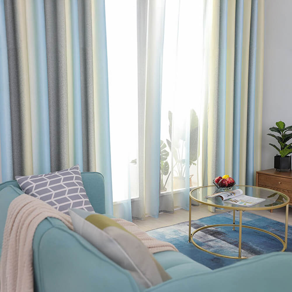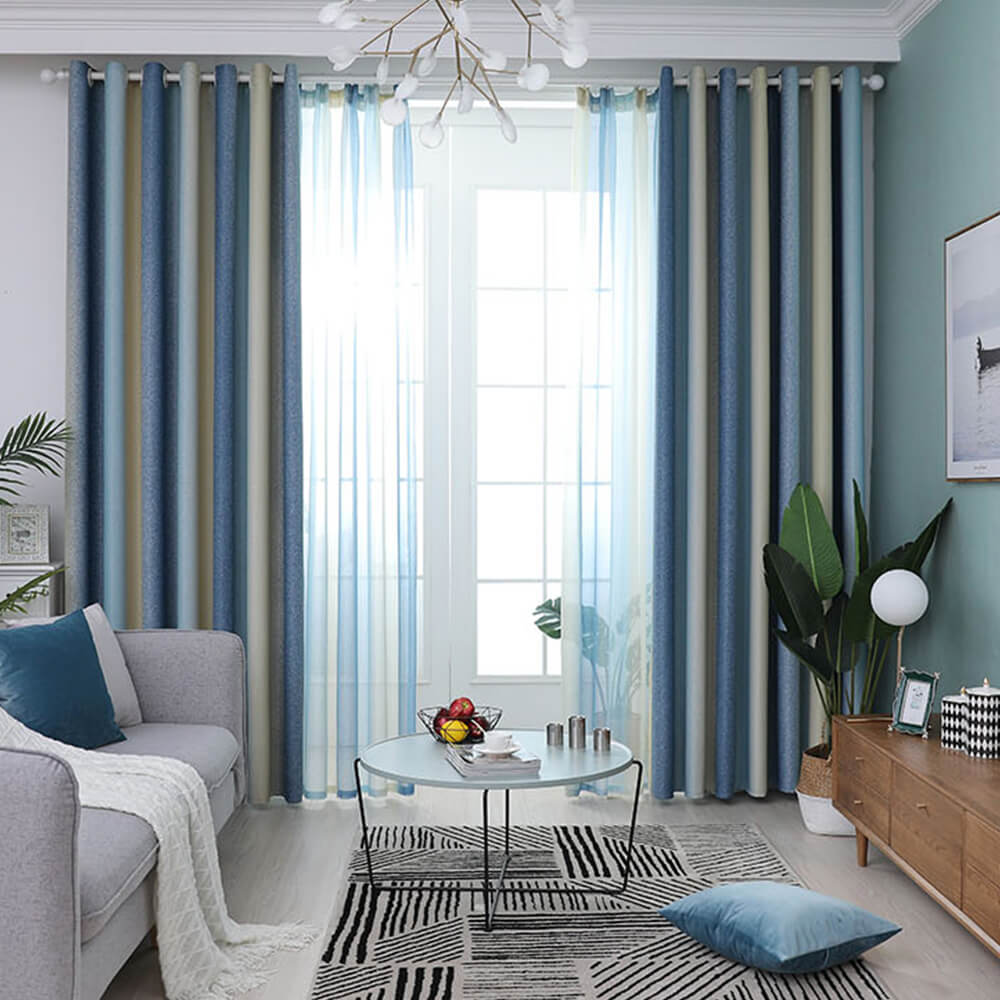 Stylish Mediterranean Gradient Stripe Blackout Curtains