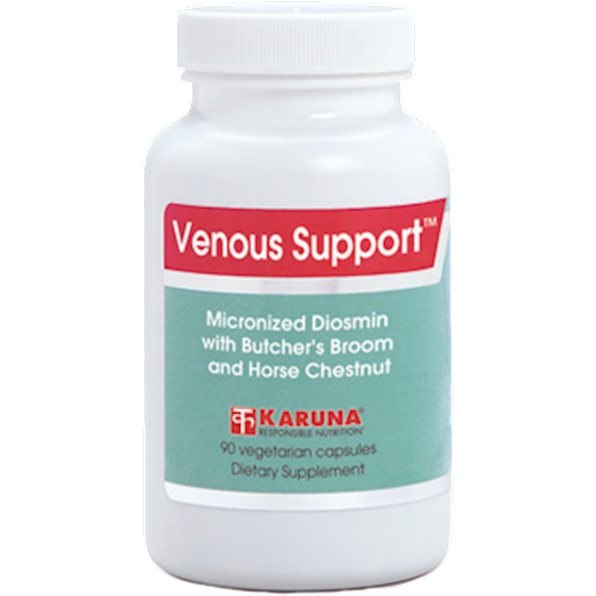 Venous Support contains clinically-studied botanical and flavonoid combinations to support the connective tissue integrity of veins and capillaries. Optimal function of the venous circulatory system is essential for controlling fluid balance within the tissues of the upper and lower extremities, and to maintain normal volume of the leg and hemorrhoidal veins. Horse Chestnut Seed Extract contains escin, and Butcher's Broom contains ruscogenins; these saponins are responsible for effects on vascular tone and permeability. The flavonoids diosmin and hesperidin, often combined with vitamin C, also have important influences on vascular connective tissue.*